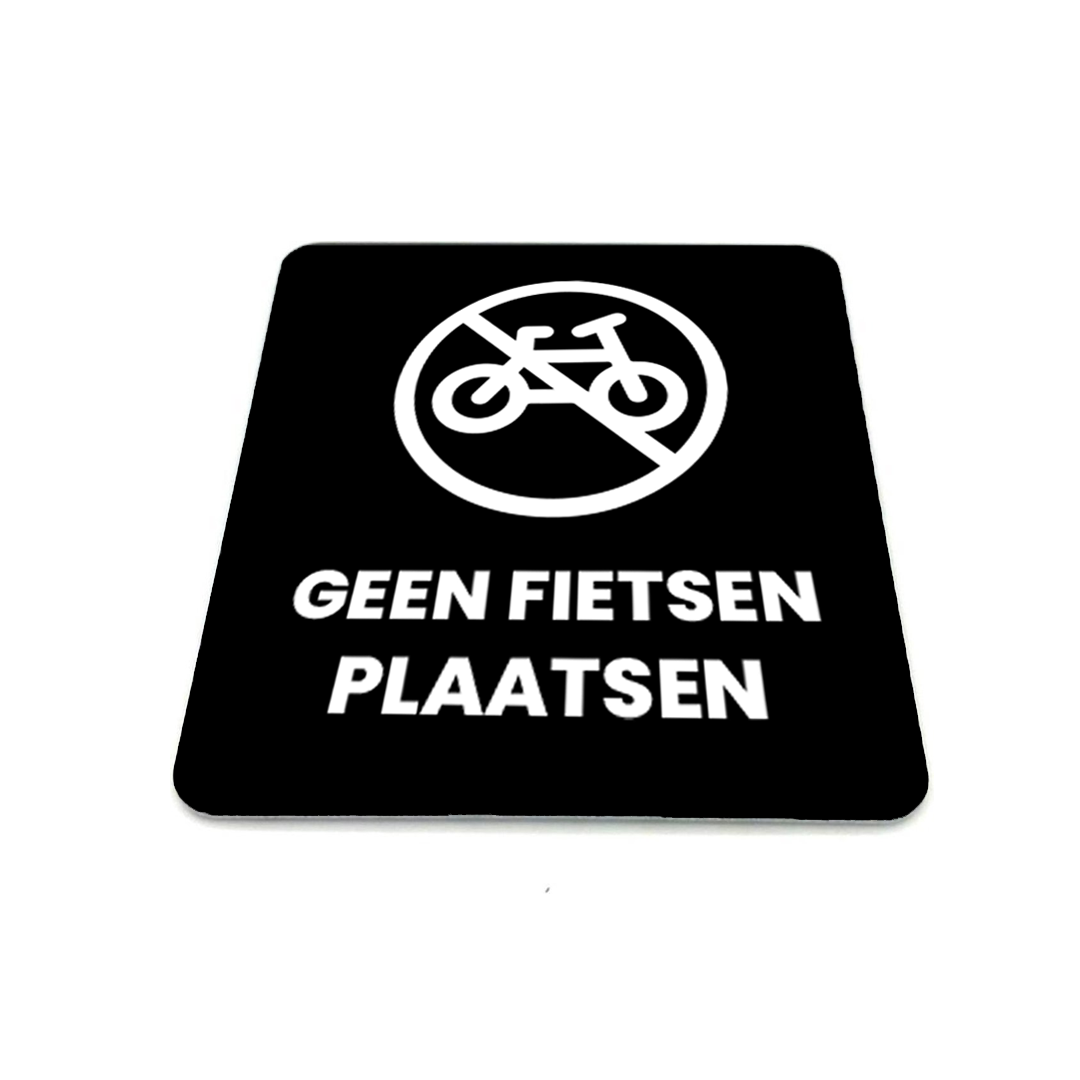 Deurbordje Geen fietsen plaatsen – Zwart/wit met icoon – 12 x 10 cm – 1,6mm dikte – zelfklevend