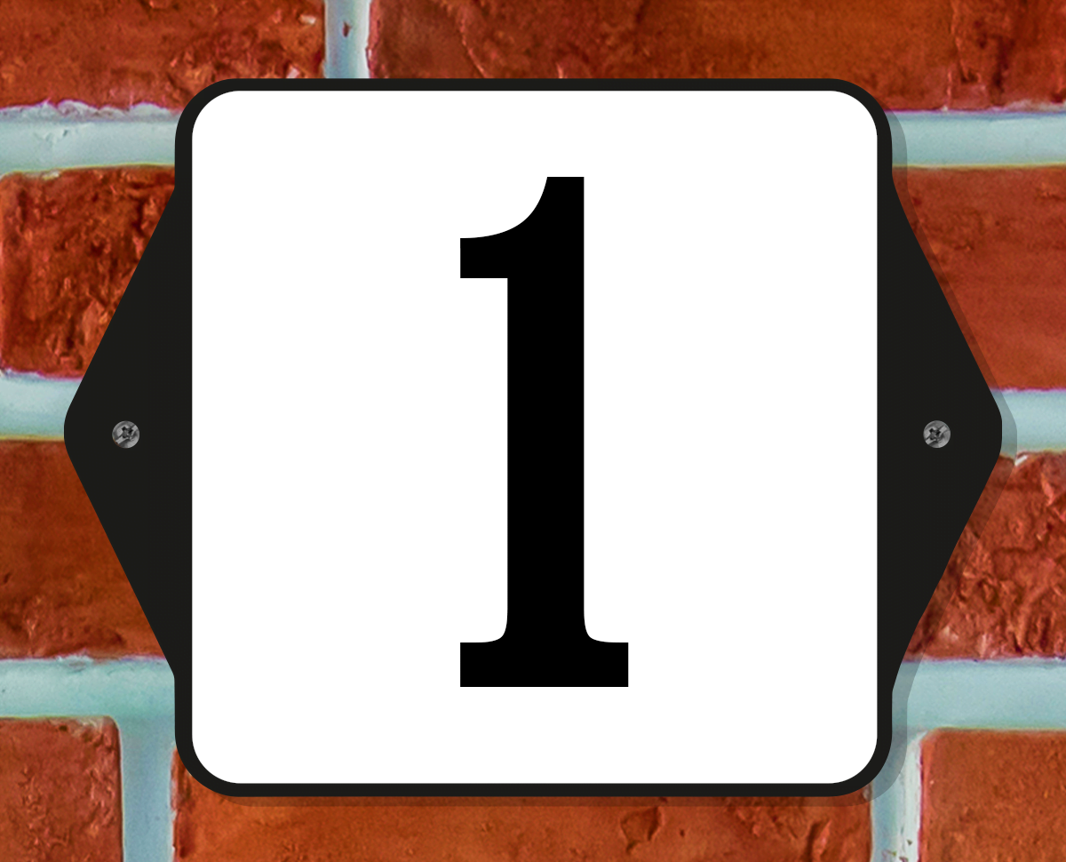 Huisnummerbord Klassiek – Nummer 1 – 14 x 11 cm – incl. bevestiging
