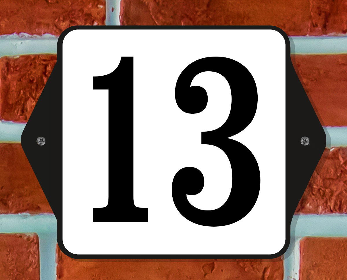 Huisnummerbord Klassiek – Nummer 13 – 14 x 11 cm – incl. bevestiging