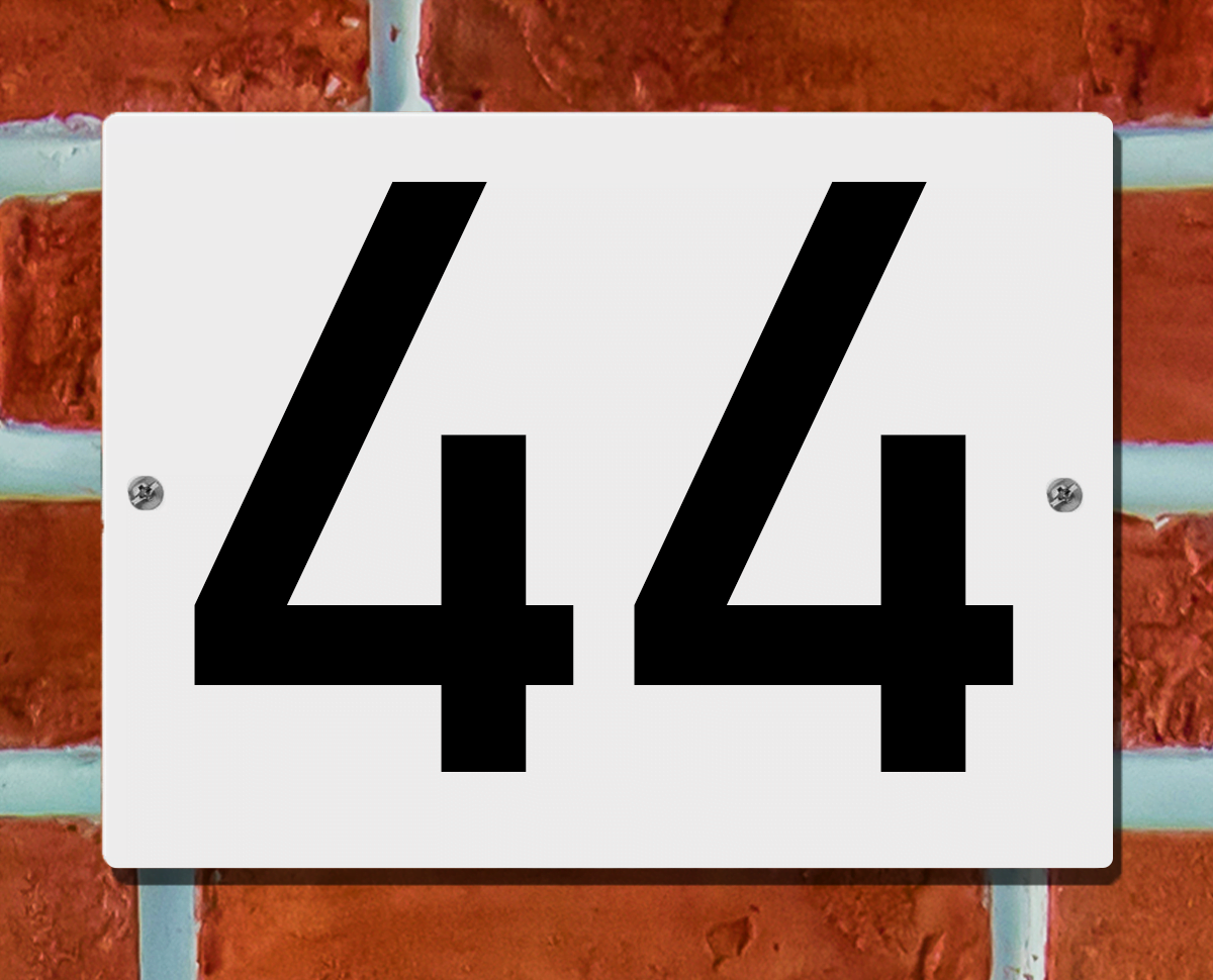 Huisnummerbord Wit – Nummer 44 – 15 x 12 cm – incl. bevestiging